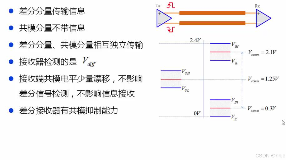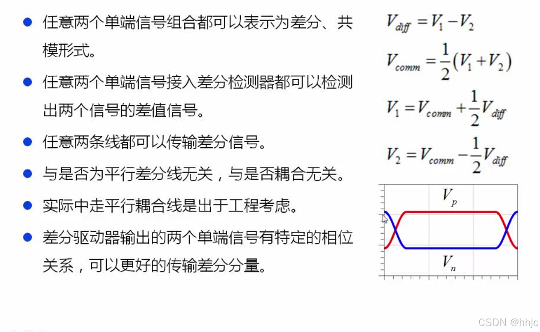 差分互连方式中,使用两条传输线来传输信号。差分驱动器有两个输出端,这两个输出端同时输出信号。理想情况下两个信号边沿对齐,但是翻转方向相反。