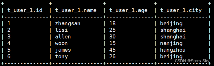 create table t_user_1(id int,name varchar(255),age int,city varchar(255))
