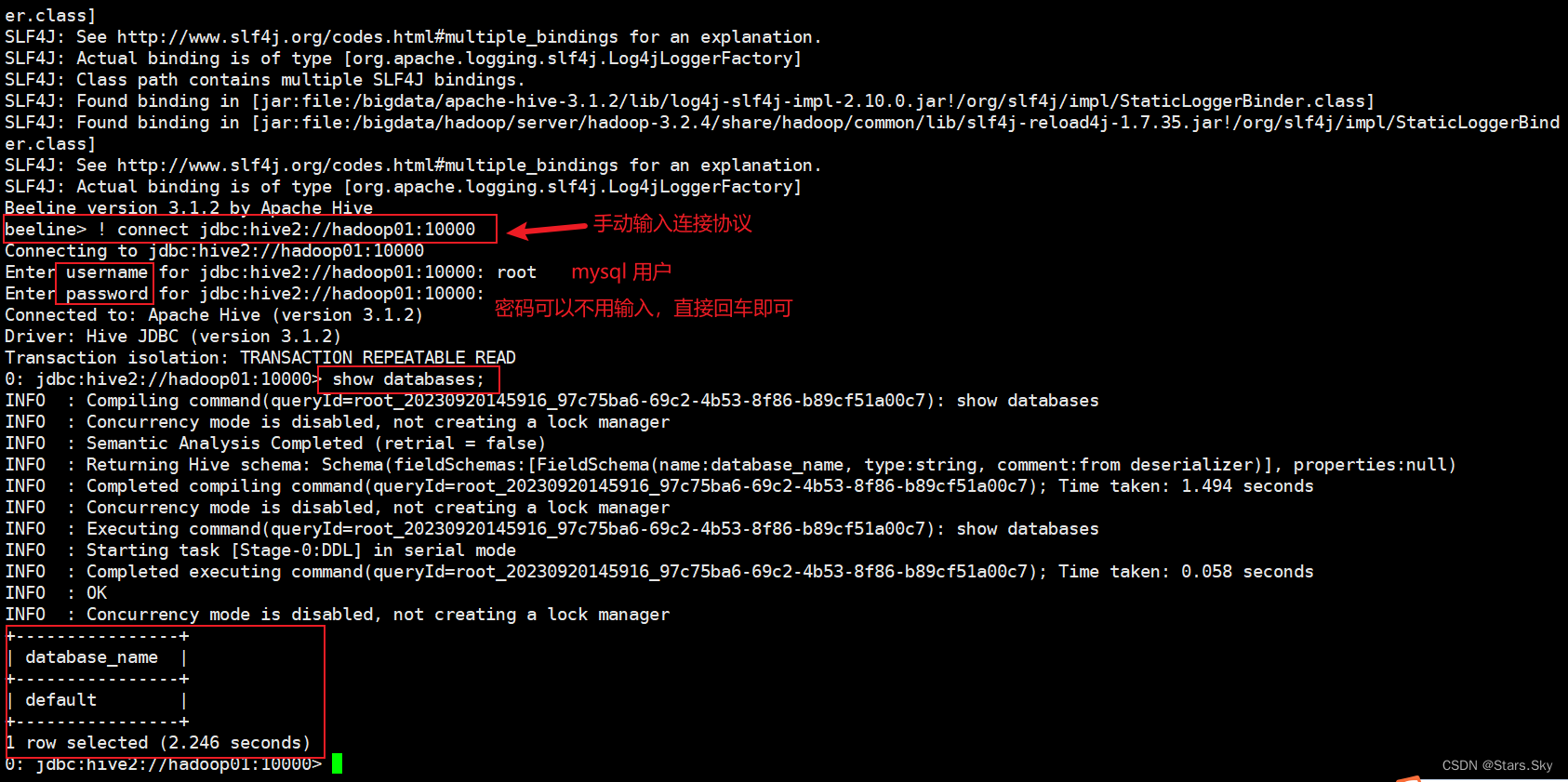 Enter username for jdbc:hive2://hadoop01:10000: root