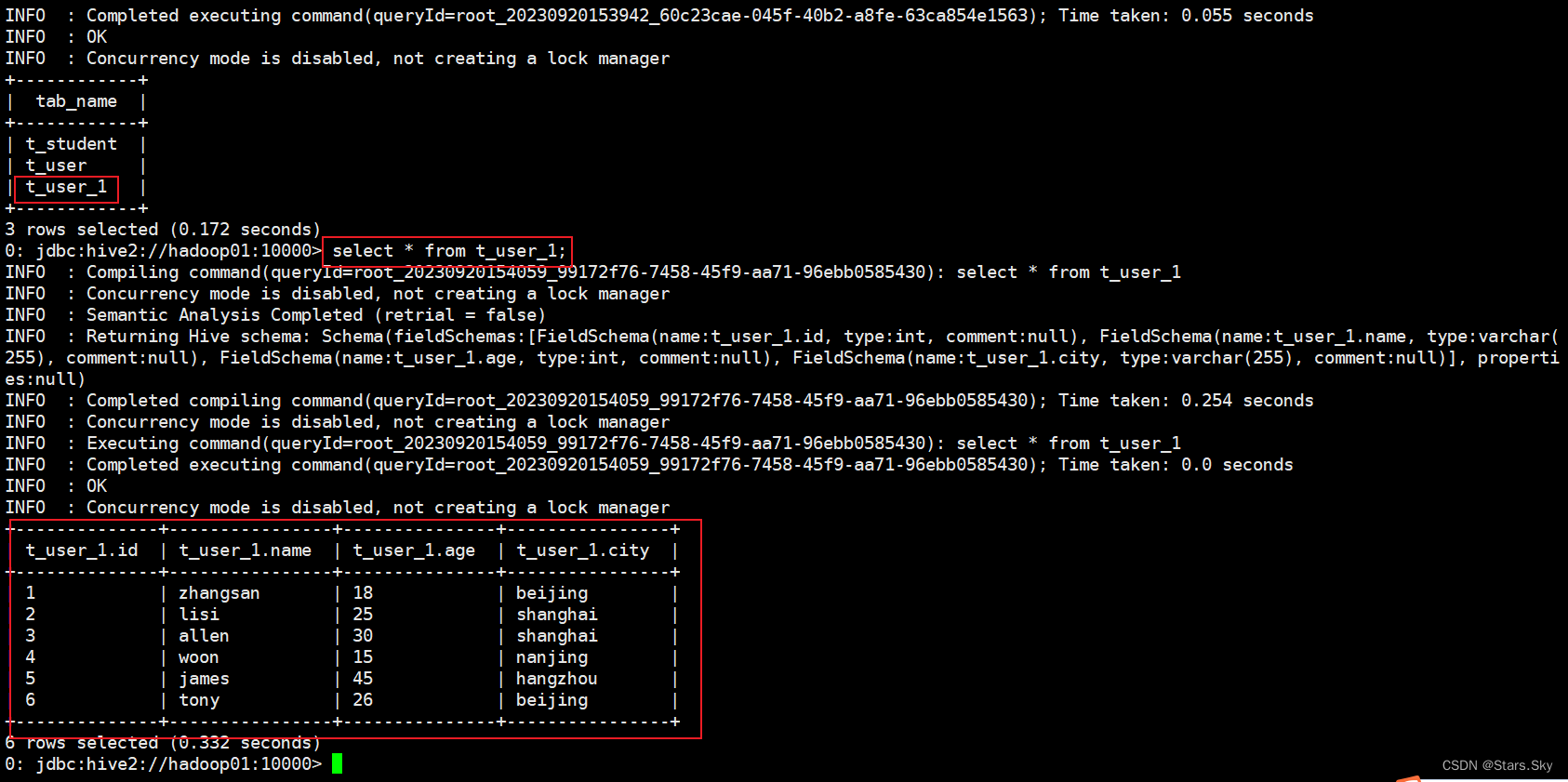 beeline> ! connect jdbc:hive2://hadoop01:10000