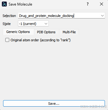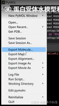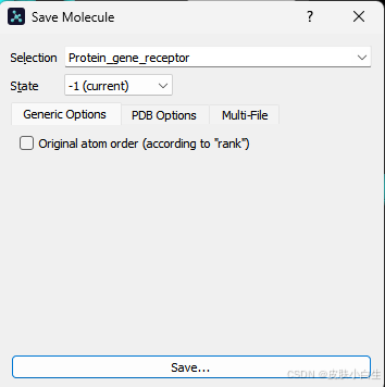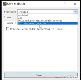 - 文件导出:在pymol中导出蛋白受体文件,选择蛋白基因受体并保存为pdb格式。