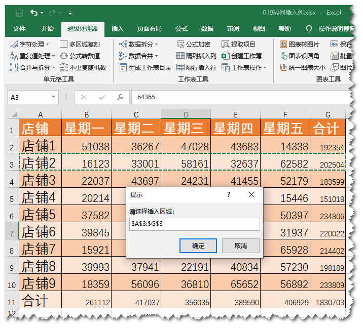 第一步、打开超级处理器菜单,点击隔列插入列按钮;