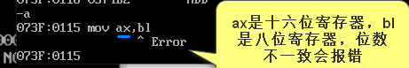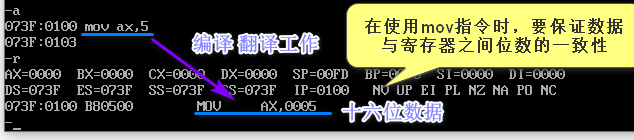 在使用mov指令时,要保证数据与寄存器之间位数的一致性
