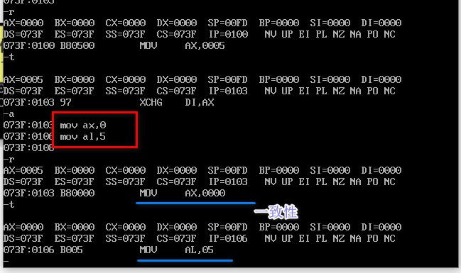 注意:数据与寄存器之间要保持一致性 8位寄存器给8位寄存器 8位数据给8位寄存器 16位数据给16位寄存器