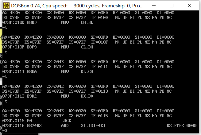 -t:执行CS:IP指向的内存单元处的指令