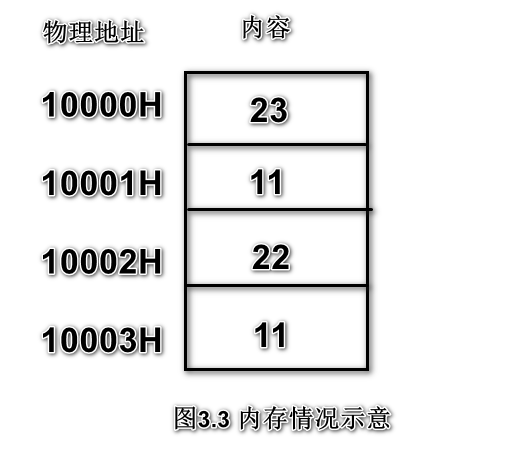内存中的情况如图3.3所示,写出下面的指令执行后内存中的值