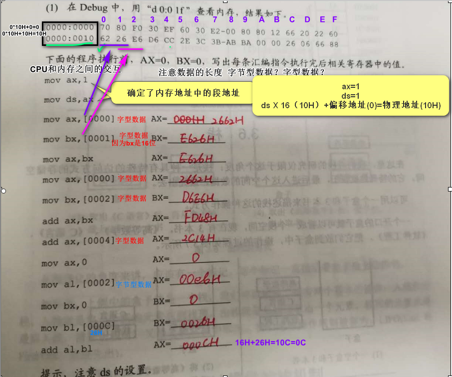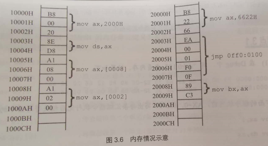 FF0H*10H+100H=10000H——》mov ax,2000H