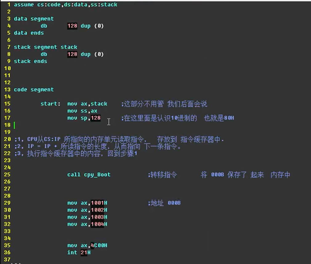 push bx ;注意入栈顺序