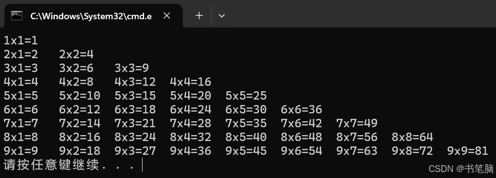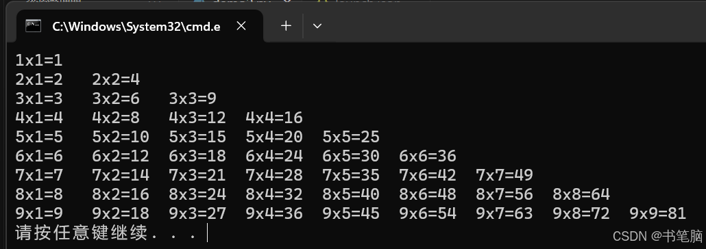 - 需要注意缩进,嵌套for循环同样通过缩进确定层次关系、