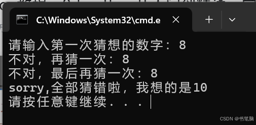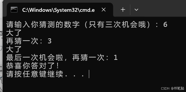 2)有三次机会猜数字,通过3层嵌套判断实现;