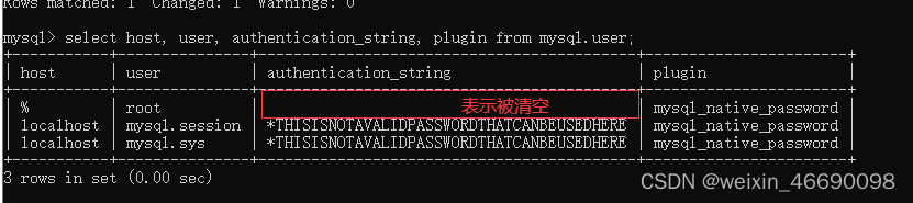 10、重新查询表中字段信息。此时密码字段authentication_string不再是空,并且是密文显示