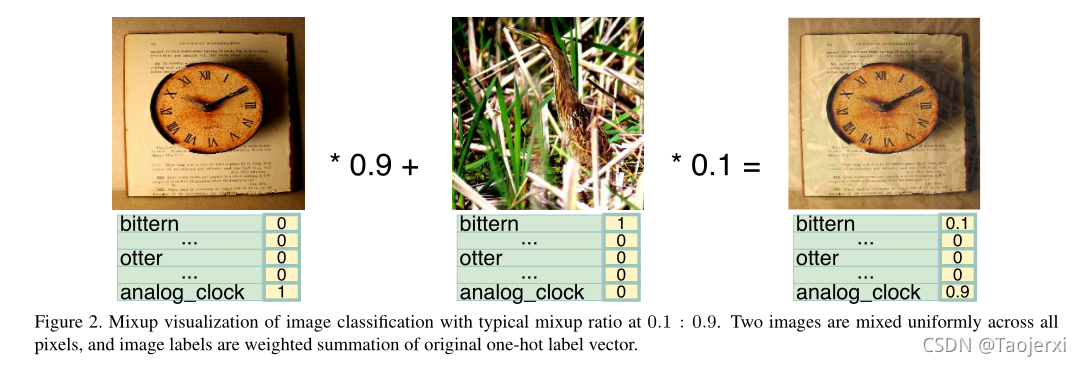 mixup在图像分类中被证实了能够有效减小对抗性扰动。其核心思想就是通过混合训练集中图像的像素这种简单线性变化来调整神经网络。例如:
