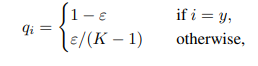 原来的qi是独热码,即当i = y时为1,i != y时为0。标签平滑过后: