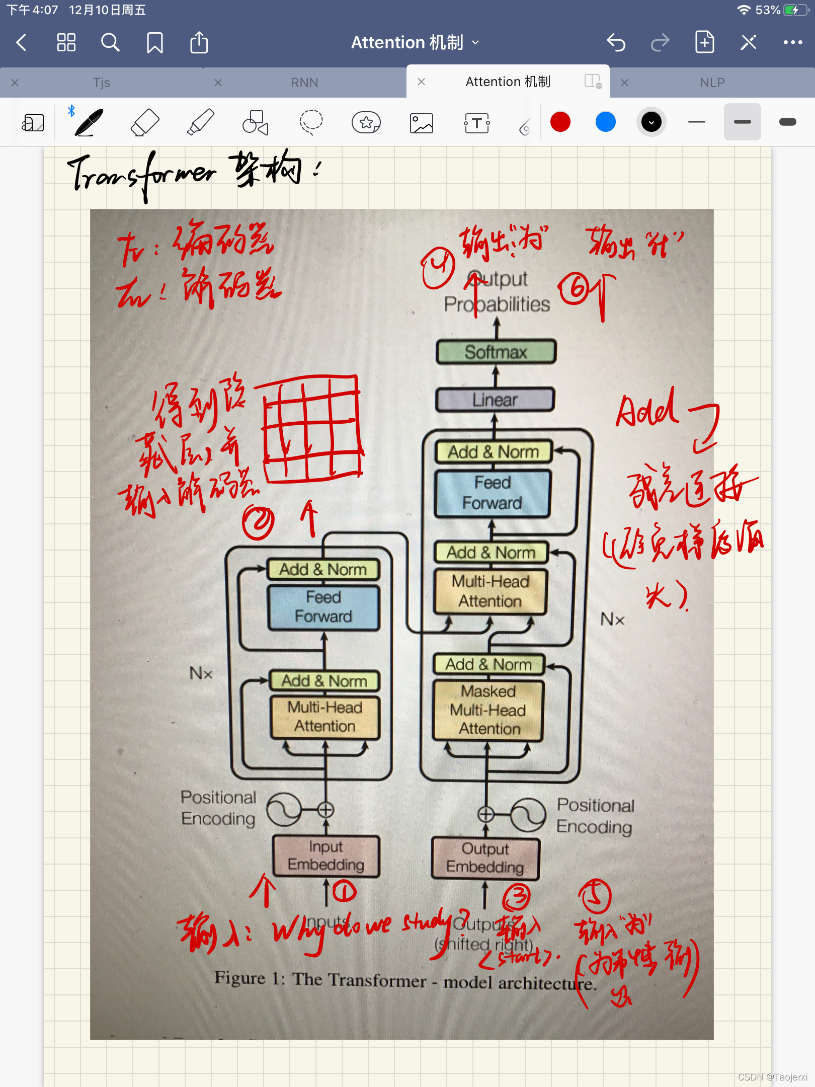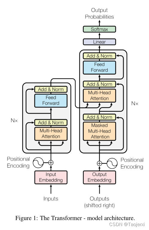 这就是Transformer的总体结构,左边是encoder右边是decoder。图中包含了Embedding层,Positional Encoding,Multi-head Attention,Add&Norm,Feed Forward等结构。之后会详细介绍。