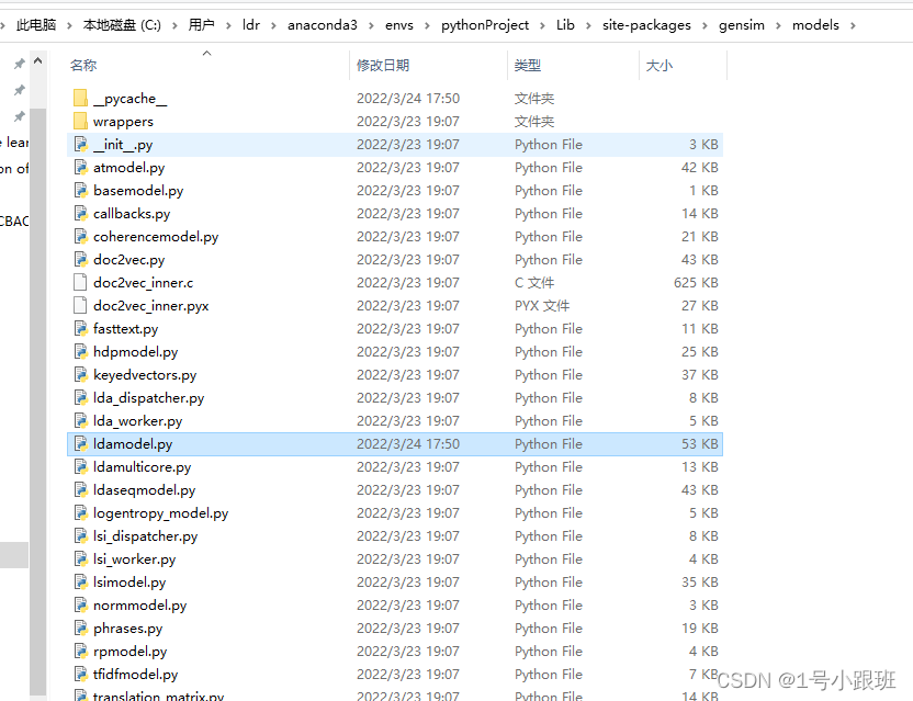 大致路径如下图,我的gensim==3.0.1是这个版本。但报这个错也和版本相关。 可以看到是gensim包里的ldamodel.py中的56行出现问题,应该版本更新。