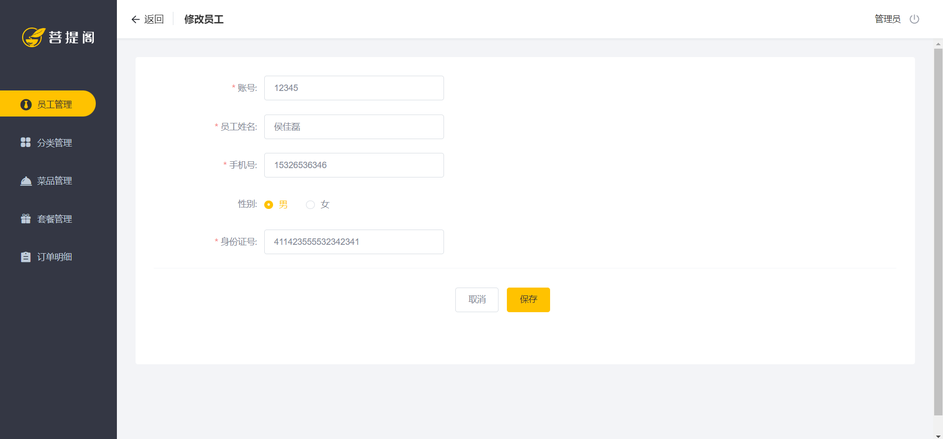 返回主页面,点击员工后面的编辑后,跳转页面时带有数据即可