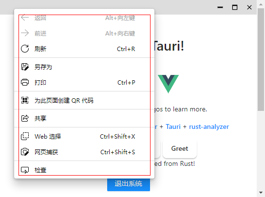 不过点击窗口右键,会出现系统菜单。这样显得应用不够原生,可以简单的通过禁用右键菜单来屏蔽功能。