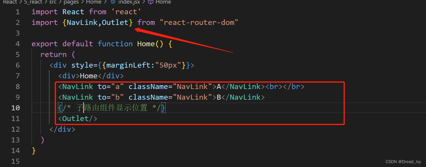 注册路由(无需声明参数):<Route path="/home" component={Home}/>