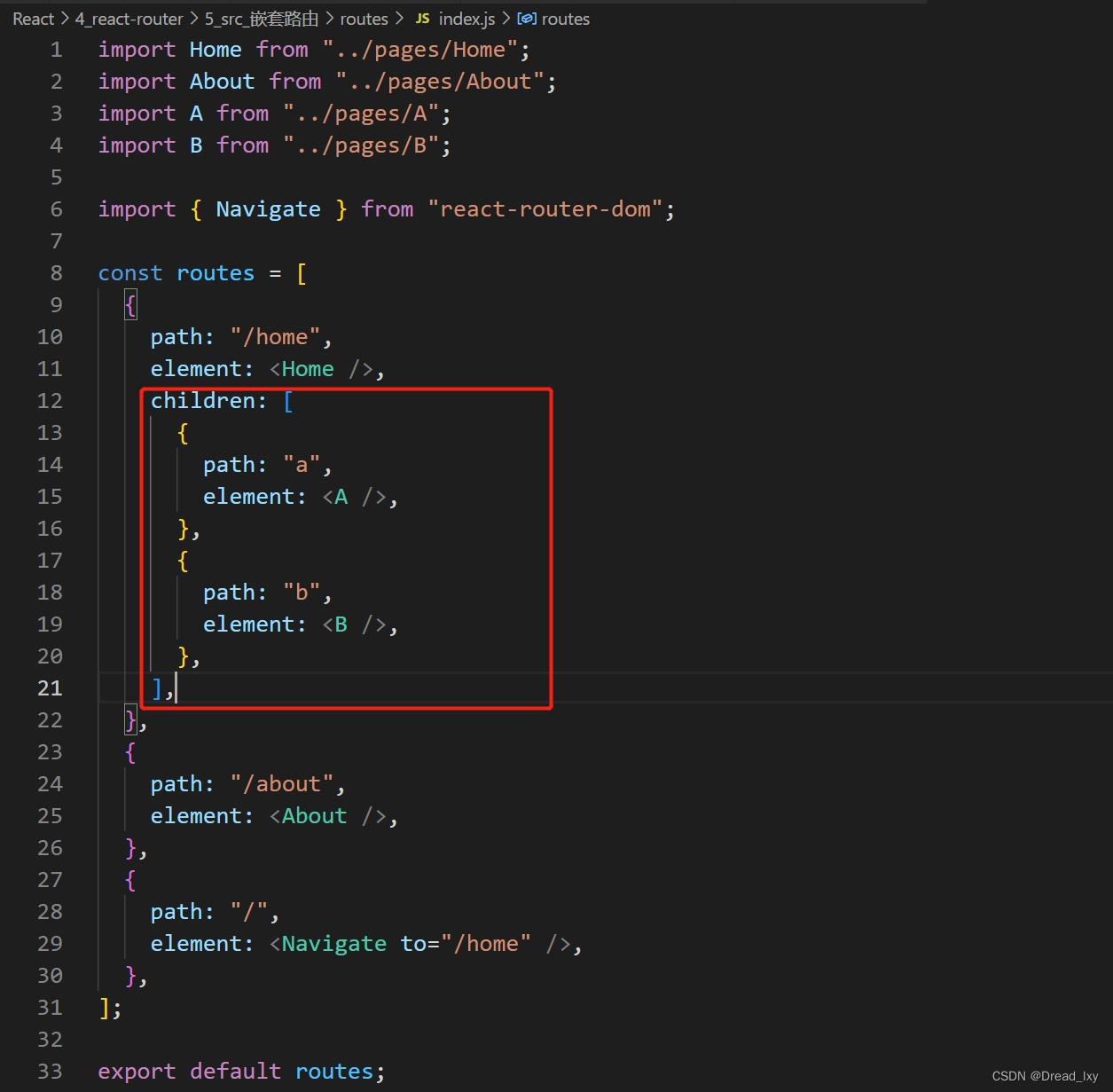 1.在src目录下新建routes文件夹,在routes文件夹新建index.js(用于管理路由)