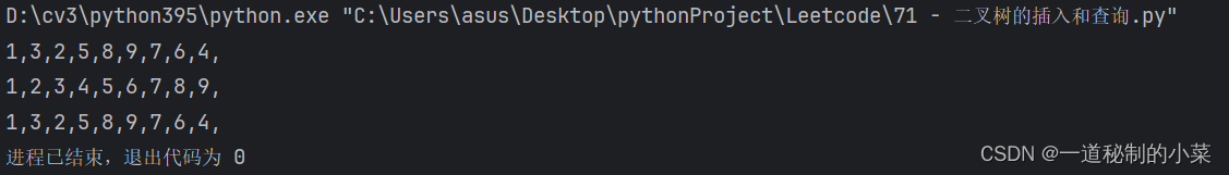 输出结果如下所示:我们可以发现,中序遍历的结果一定是升序的!(对于二叉搜索树来说),因为中序遍历的遍历规则为先遍历左边,再遍历根节点,再遍历右边。