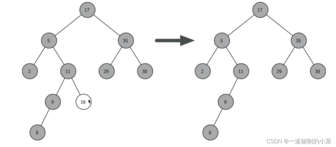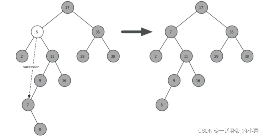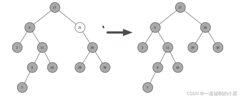 # 接下来将min_node删除,此时min_node有三种删除情况,但是min_node肯定没有左孩子,只能是叶子节点或只有一个右孩子