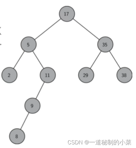 - 二叉搜索树是一颗二叉树且满足性质:设x是二叉树的一个节点。如果y是x左子树的一个节点,那么y.key <= x.key ; 如果y是x右子树的一个节点,那么y.key > = x.key.