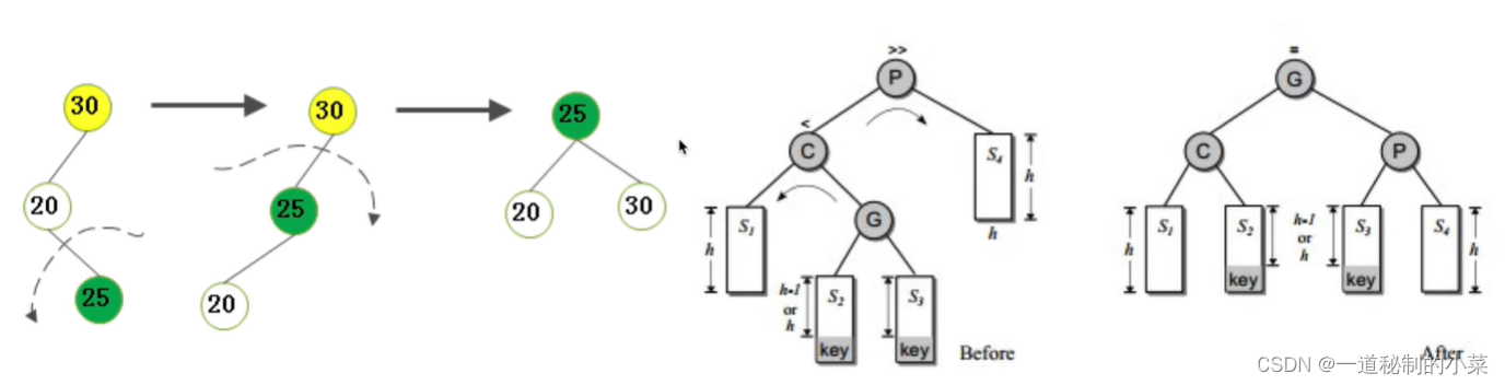 4. 不平衡是由于对K的左孩子的右子树插入导致的:左旋 - 右旋