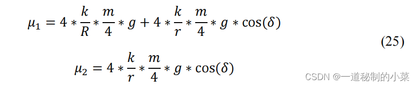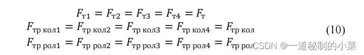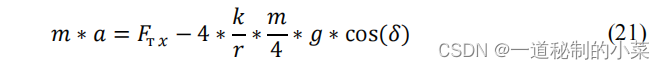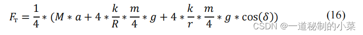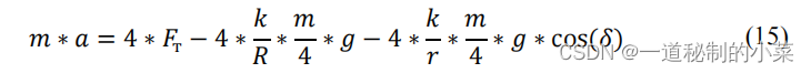 假设小车的质量均匀分布在轮子之间,那么我们可以假设: 𝑚1 =𝑚/4,则滚动摩擦力的公式由(12)转换为(14)。