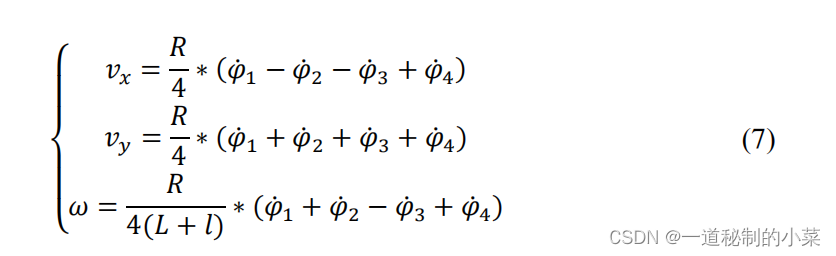 其中: - 为移动小车第n个全向轮的角速度 rad/s;