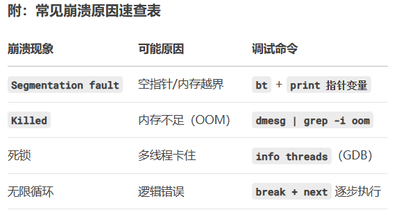 5. 使用调试器(GDB):实时“蹲点抓凶”