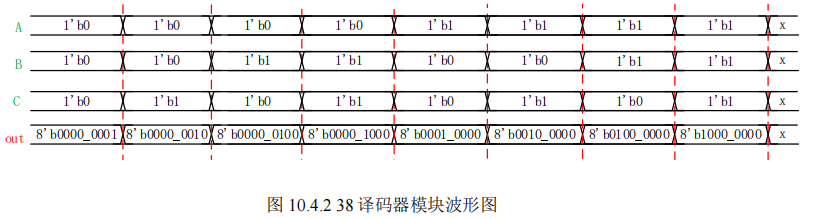 ----这个波形图中的Out是一个8bit的值,这样展示数字逻辑的波形图,很简洁高效。但不知道实际的波形图软件是否可以搞出这种波形图出来。