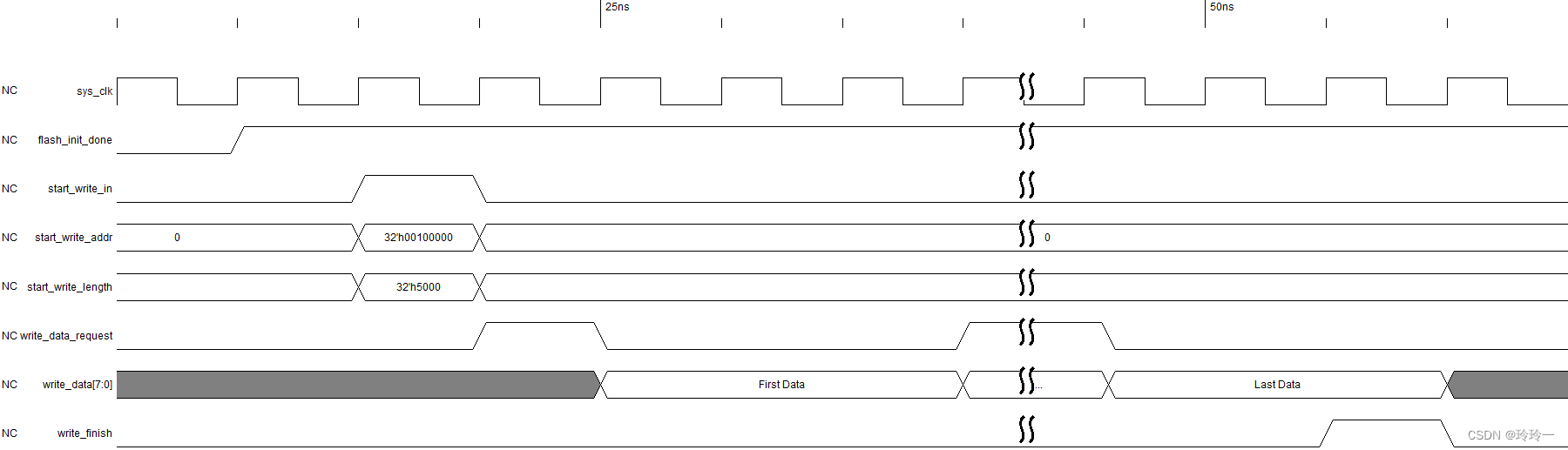 | write_data_request | 用户写数据有效请求,需要在下个时钟周期将write_data准备好 | output |