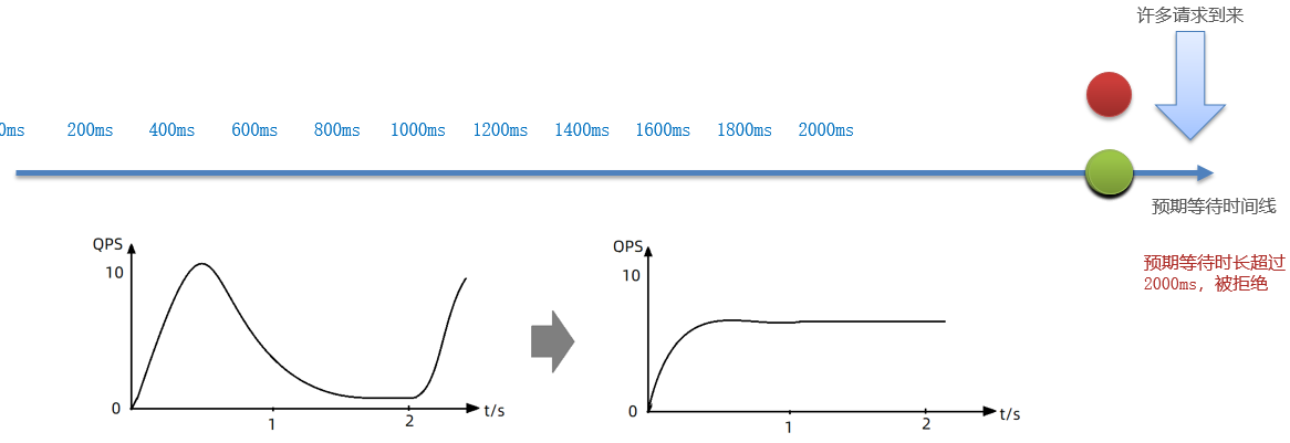 例如:QPS = 5,意味着每200ms处理一个队列中的请求;timeout = 2000,意味着预期等待超过2000ms的请求会被拒绝并抛出异常