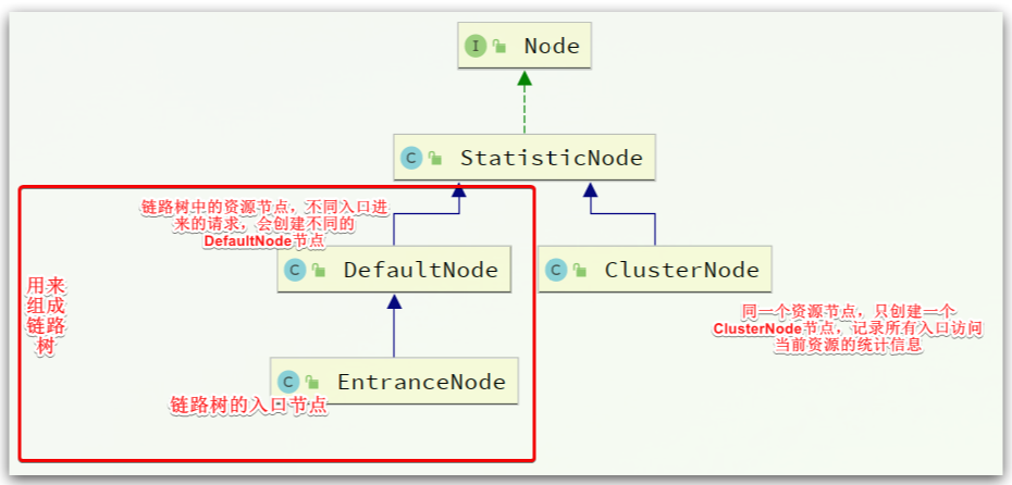 Sentinel中的簇点链路是由一个个的Node组成的,Node是一个接口,包括下面的实现:
