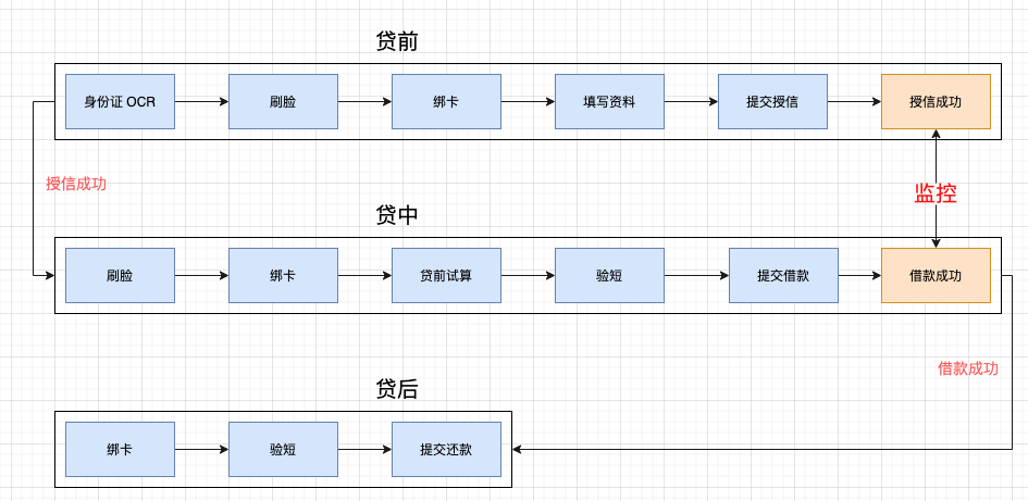 贷中:即借款环节,授信通过之后,用户就可以借款了