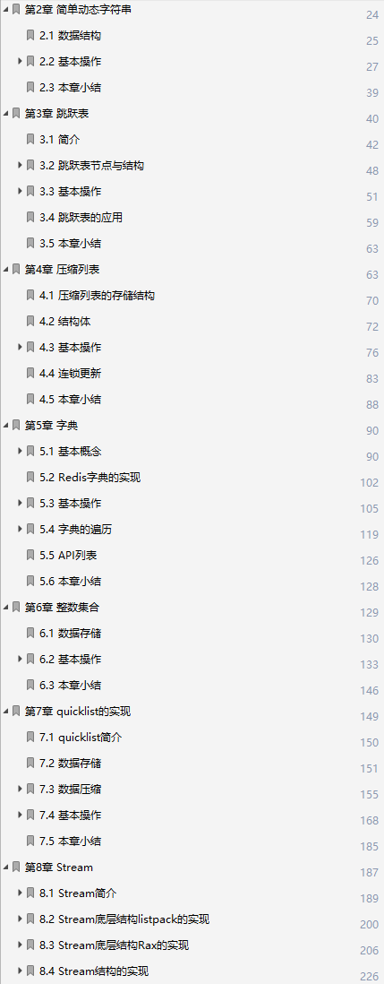 第2~8章重点讲解了SDS、跳跃表、压缩列表、字典、整数集合、quicklist和Stream数据结构的实现。