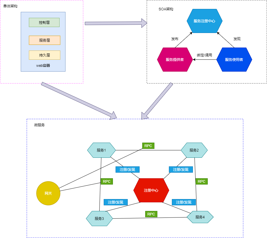 面向服务就是把传统的单机应用中通过JAR包依赖产生的本地方法调用,改造成通过RPC接口产生的远程方法调用。