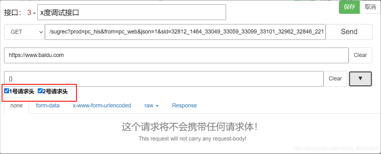 然后接口本身的请求头是空的,但是选中这俩个公共请求头: