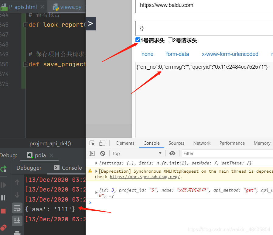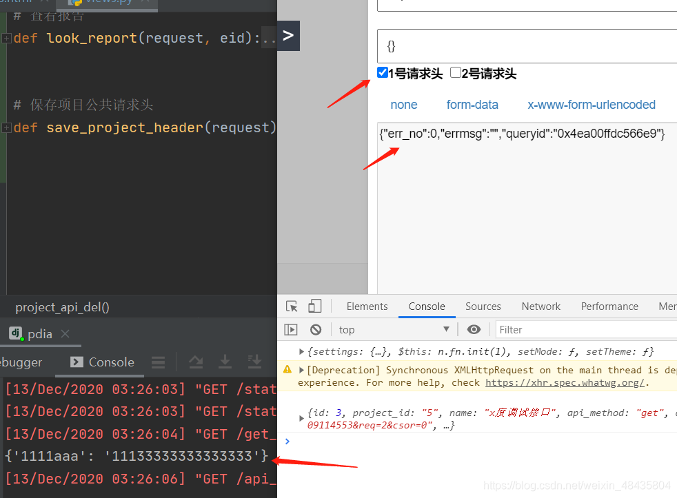新增代码很简单,获取公共请求头的id列表。然后遍历,从数据库取出来,逐个添加到原来的header字典里,这里打印了一下,看看: