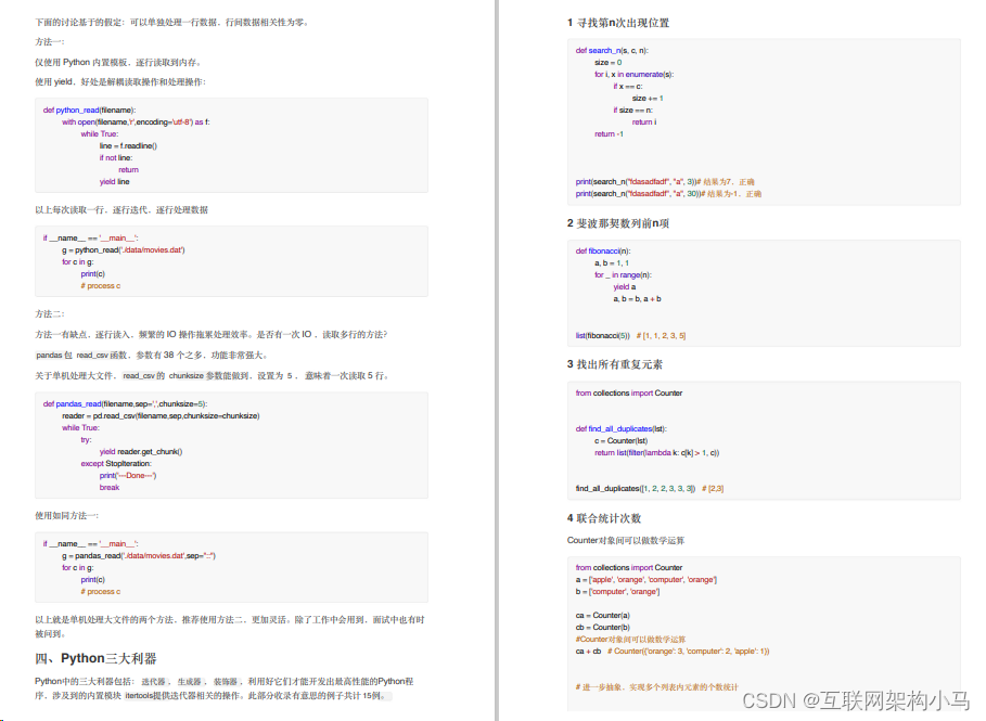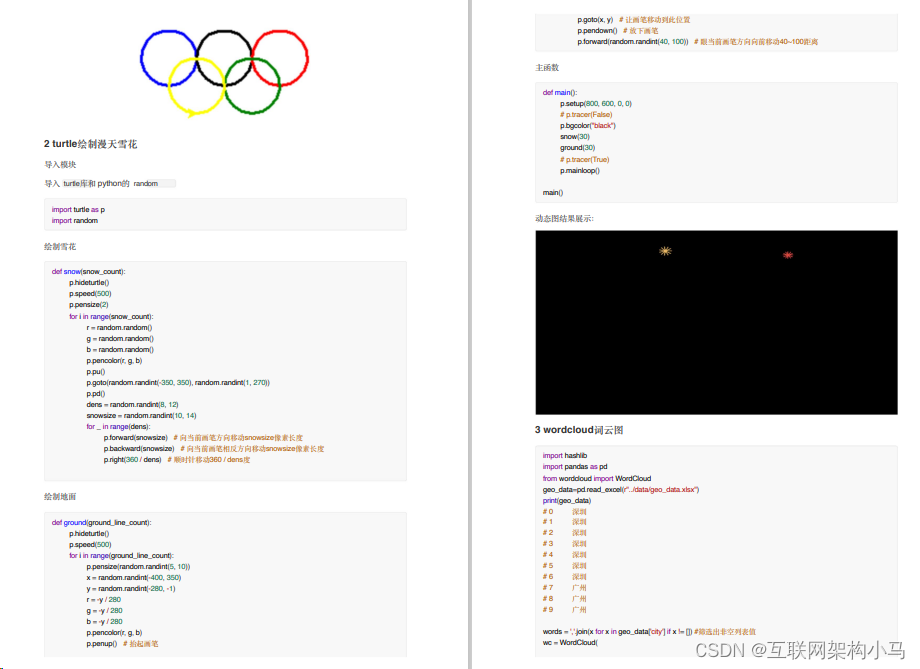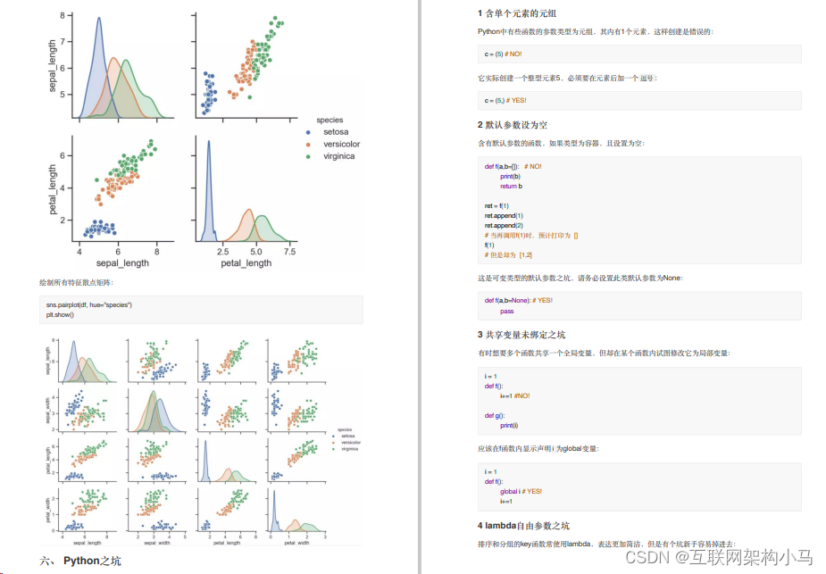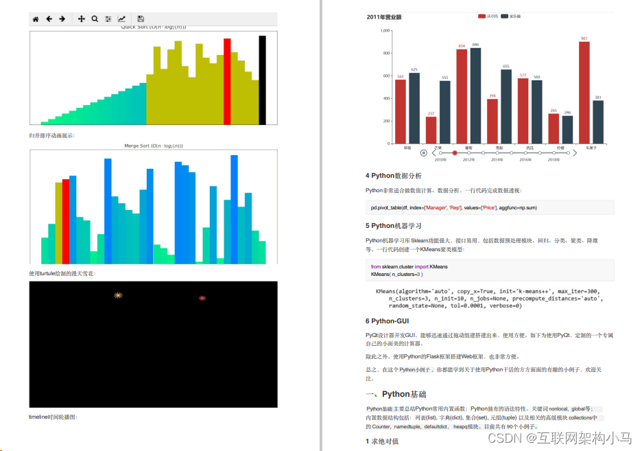 涵盖了Python基础、Python字符串和正则、Python⽂件和⽇期、Python三⼤利器、Python绘图、Python之坑、Python第三⽅包、机器学习和深度学必知算法、Python实战、Pandas数据分析案例实战十大篇幅的精品案例教程
