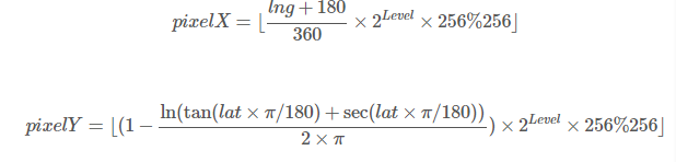 - 经纬度坐标(lng, lat)转像素坐标(pixelX, pixelY)