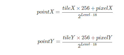 - 瓦片(tileX, tileY)的像素坐标(pixelX, pixelY)转经纬度坐标(lng, lat)