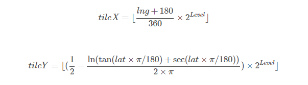 - 经纬度坐标(lng, lat)转瓦片坐标(tileX, tileY):