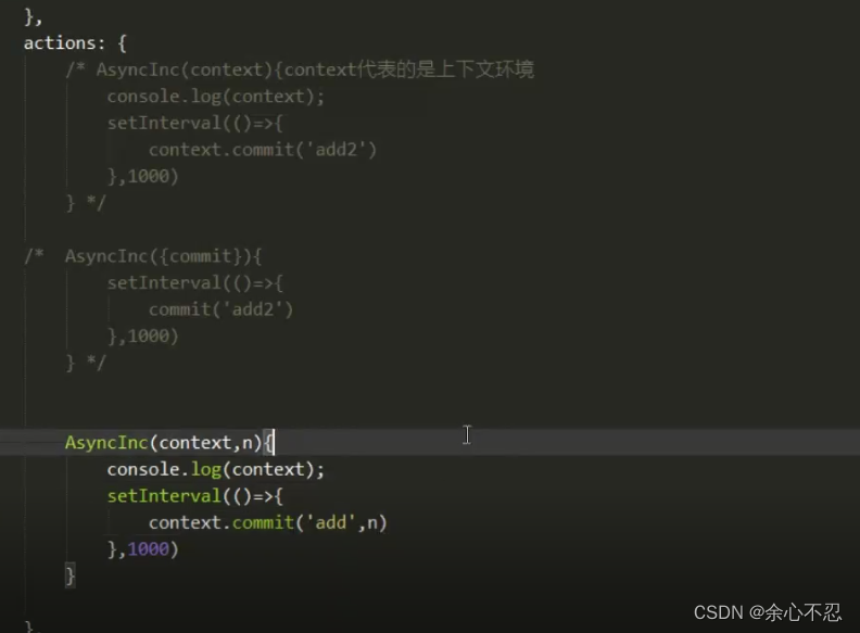 // this.$store.commit('add',n)//这里的add是store派发的add方法