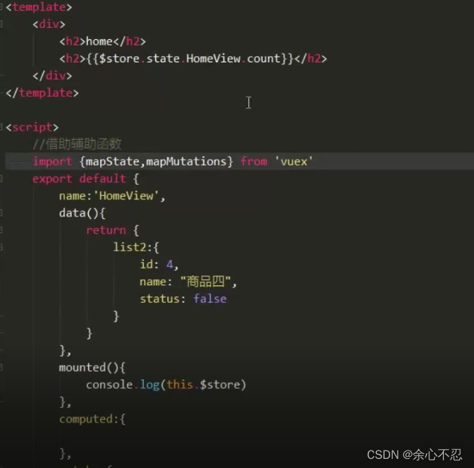 //...mapState(['count'])//方法2 不管传多少数据都会通过mapState来进行接受,还要加上三点--数组写法