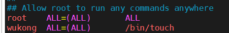 在/etc/sudoers内修改wukong的权限