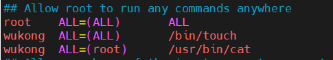 在/etc/sudoers中给wukong增加一个可以使用cat的权限