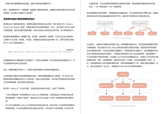 所以,为了将我们提及的知识落地,在实战篇中,我会以微博为背景,用两个完整的案例带你从实践的角度应对高并发大流量的冲击,期望给你一个更加具体的感性认识,为你在实现类似系统的时候提供一些思路。今天我要讲的第一个案例是如何设计一个支持高并发大存储量的计数系统。