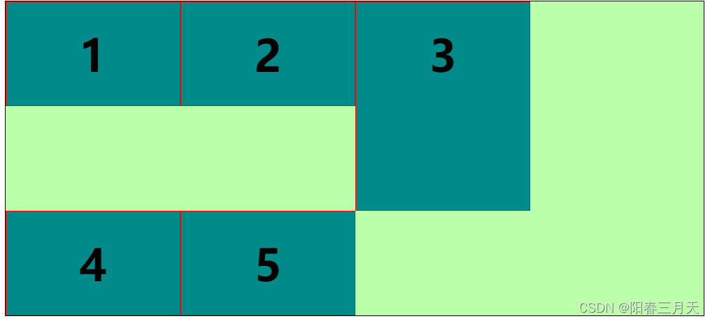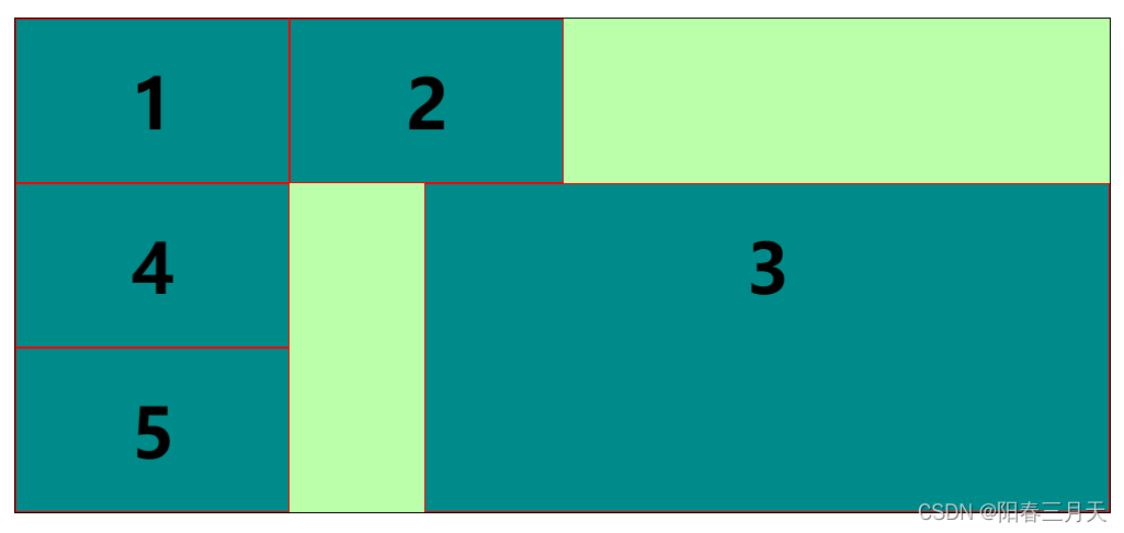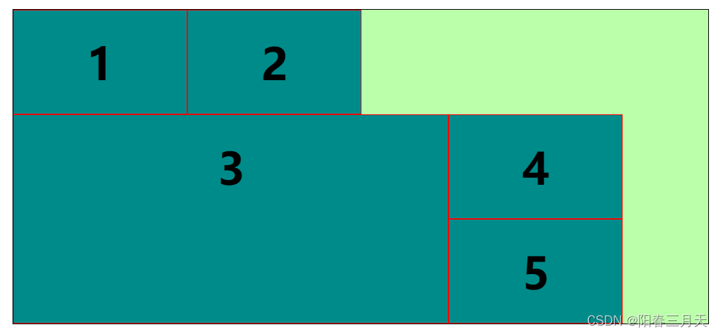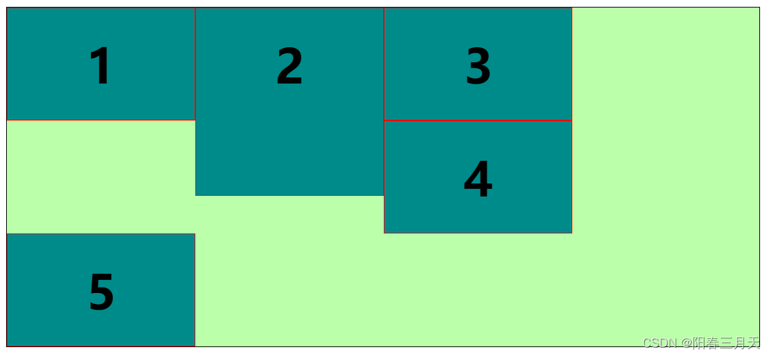 - 解释:3号右侧放不下4、5考虑落到第二行,第二行的高度起点从第一行的最大高度处开始。
