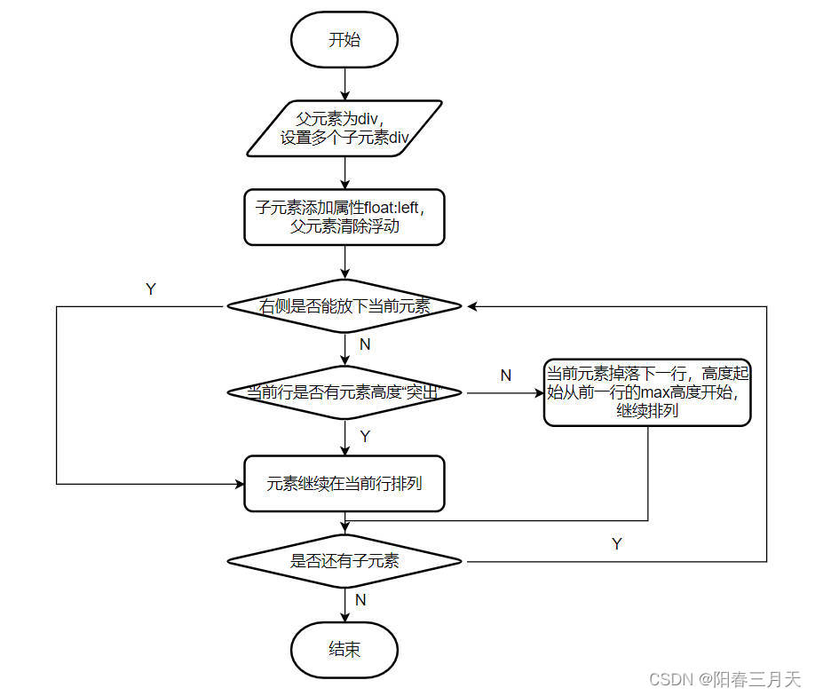 - 5:第一行放不下5,也没有能拦住它的元素,它的起始高度位置从第一行的最高处开始计算,即被拦住的4的底部。